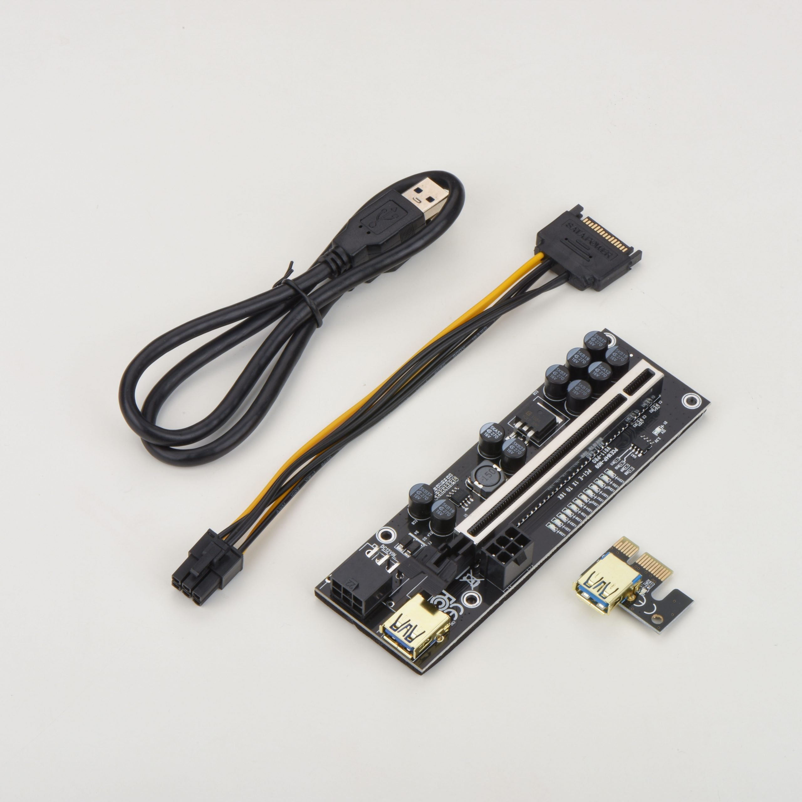 011 Pro PCIE Riser 10 Capacitors 12 LED 6Pin Power Cable 1X to16X Extender