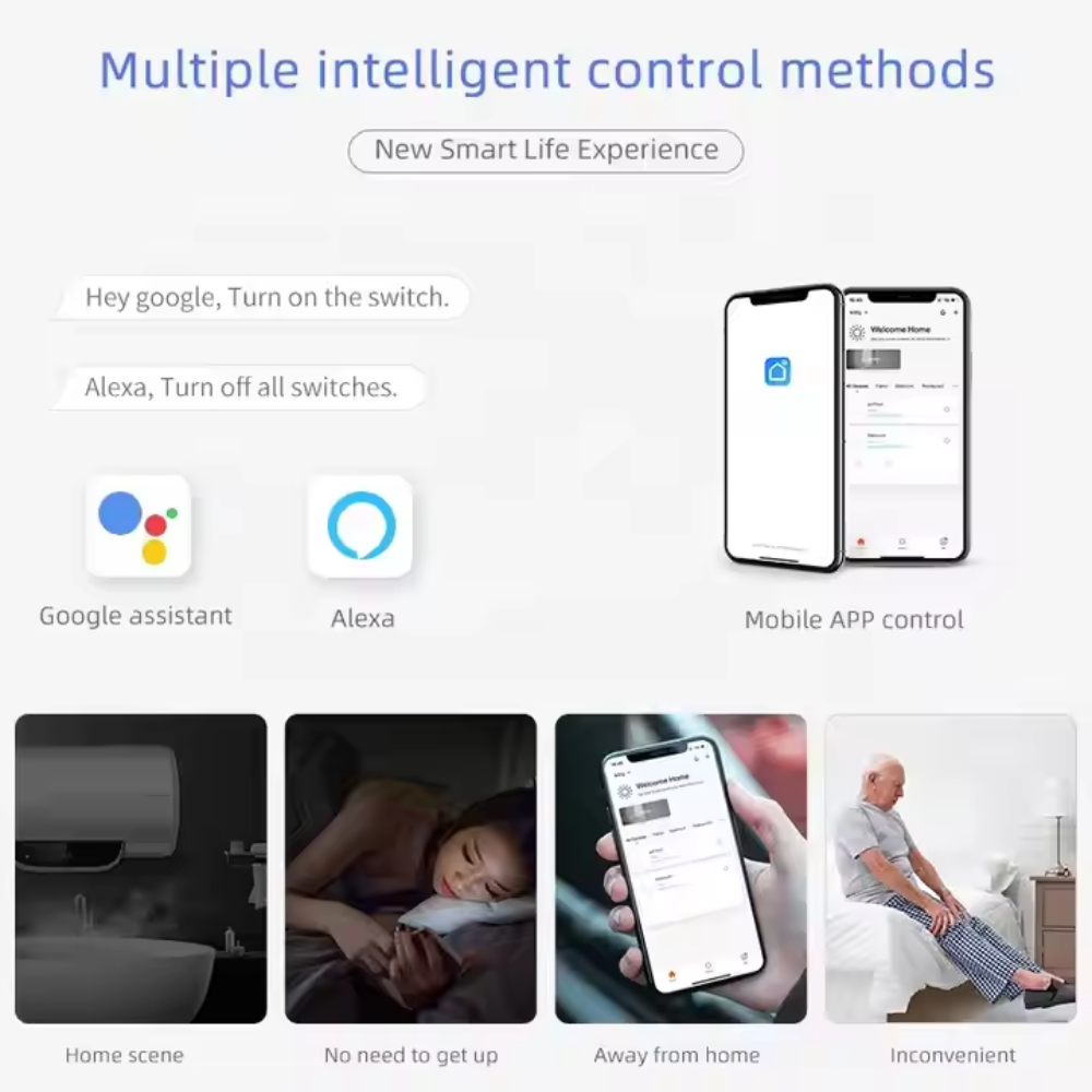 One of the most powerful features is automation. With the Wifi 40A Wall Touch Switch , you can set timers and schedules—for example, have your geyser turn on every morning at 6 AM and switch off at 7 AM automatically. You can also create “scenes” where multiple appliances are controlled together. For example, a Good Night scene could turn off your geyser, motor, and lights all at once.